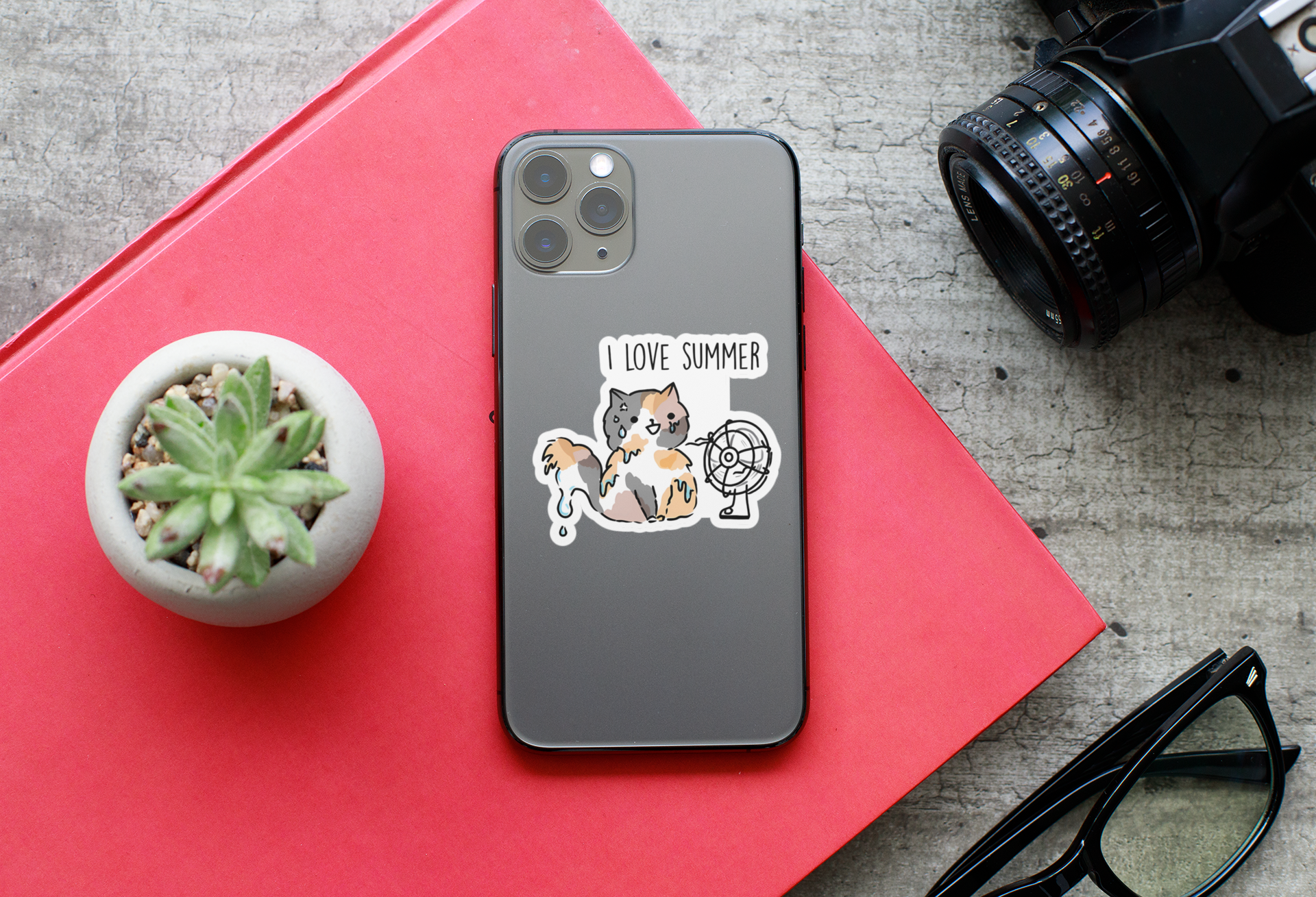 ☀️ I Love Summer Cat Sticker ☀️ 2.5" x 3"