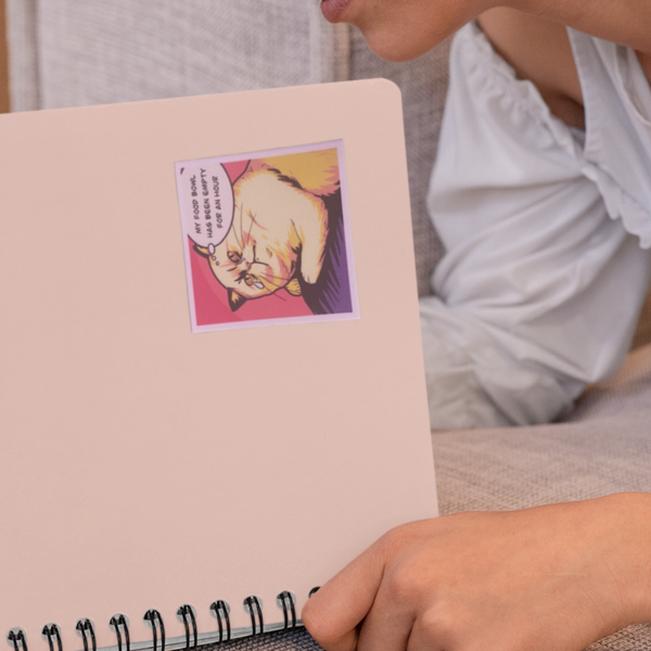 Perfect for cat parents who know the guilt-inducing stare all too well, this sticker brings a touch of humor and personality to laptops, water bottles, journals, or even your cat’s food container (for extra drama).