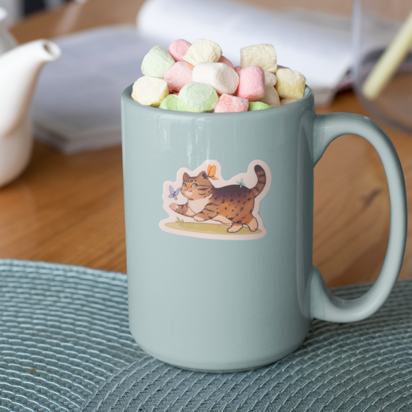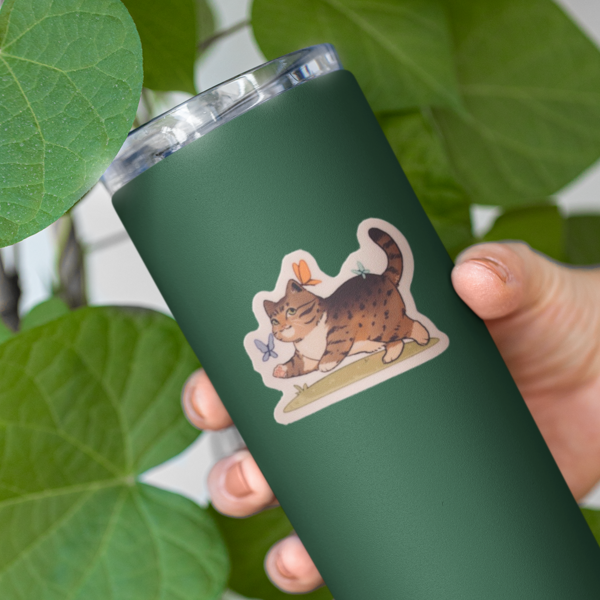 Say hello to Paulie—the delightfully chunky tabby cat who’s living his best life frolicking with butterflies. This whimsical sticker captures the joy and gentle spirit of a carefree afternoon, as Paulie bounds through the breeze with wide eyes and a heart full of wonder.