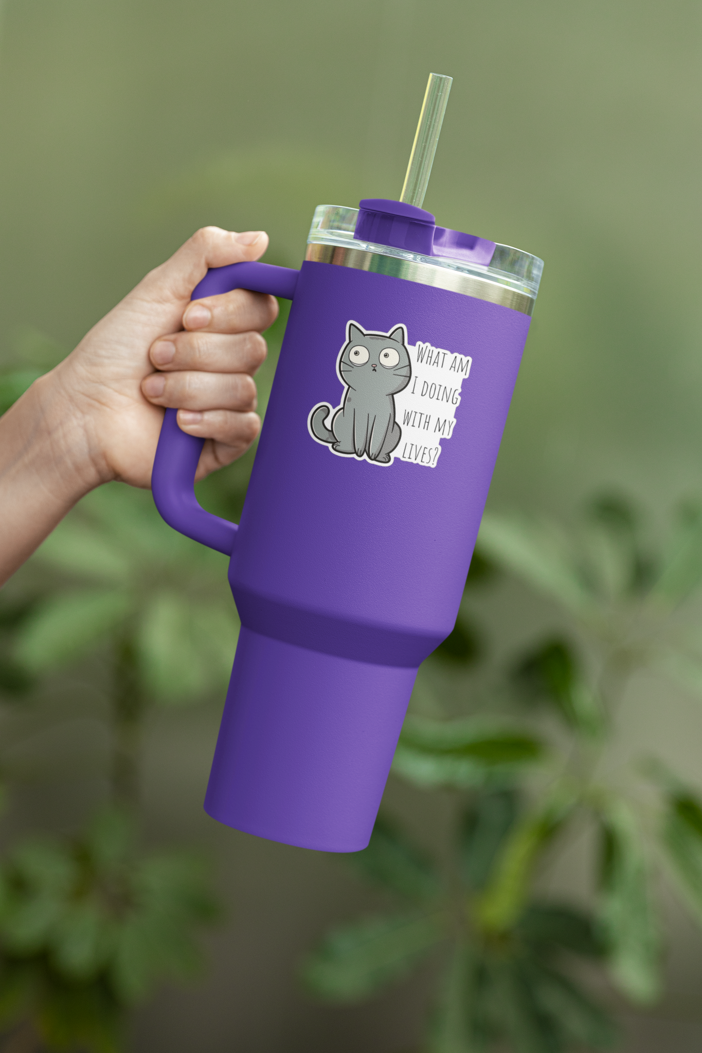 🐱 What Am I Doing With My Lives? Vinyl Sticker – 2.9" x 3"